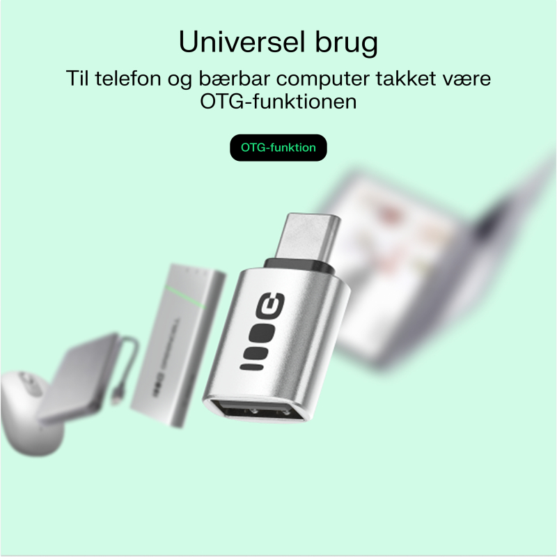 Adapteren fungerer både med smartphone og bærbar computer. Med OTG-funktionen kan du tilslutte en pendrive, tastatur eller mus til telefonen og bruge tilbehør lige så komfortabelt som på computeren.