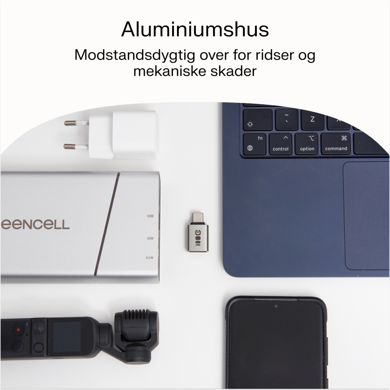 Adapteren er lavet af kvalitetsaluminium og solide materialer, hvilket gør den modstandsdygtig over for ridser og mekaniske skader. Den sikrer pålidelighed og fastholder et moderne udseende, selv ved intensiv brug. Den enkle, moderne form gør, at adapteren passer perfekt til de nyeste mobile enheder og computere.
