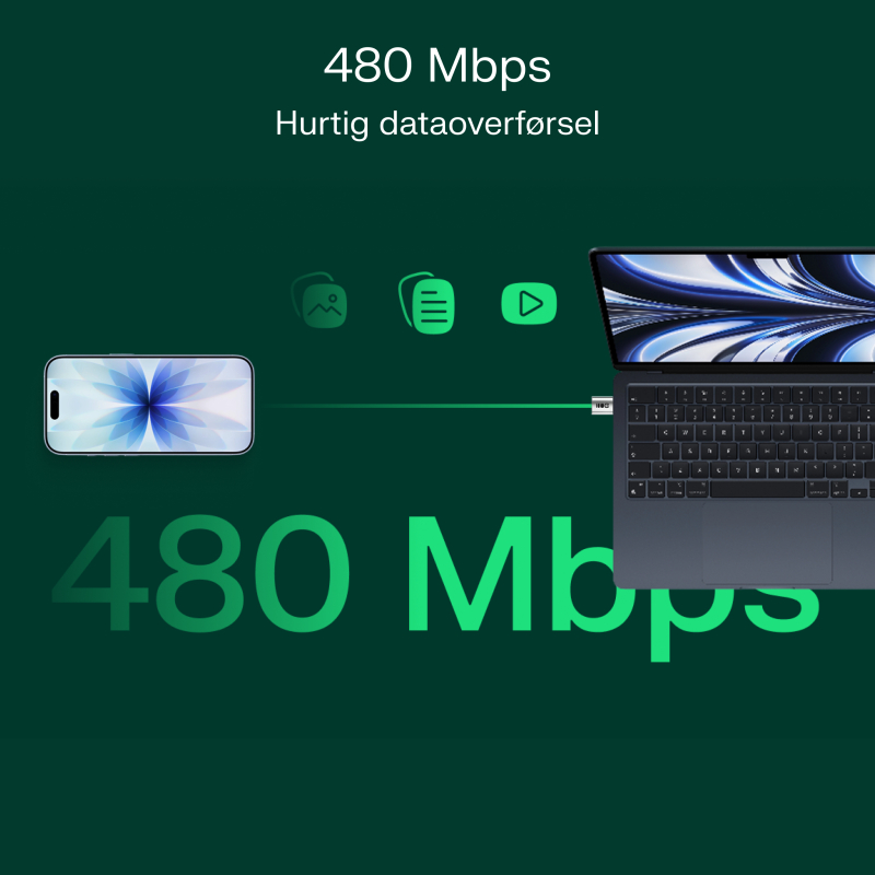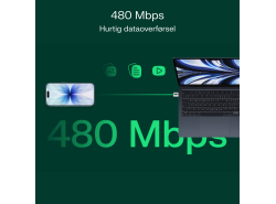Adapteren understøtter en dataoverførsels hastighed på op til 480 Mbps, hvilket gør det hurtigt og nemt at kopiere billeder, videoer eller dokumenter mellem enheder.