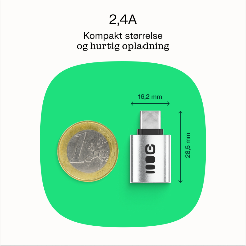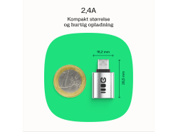 Adapteren er kompakt og let, hvilket gør den nem at opbevare i lommen eller den mindste taske. Samtidig understøtter den hurtig og stabil opladning på 2.4A.