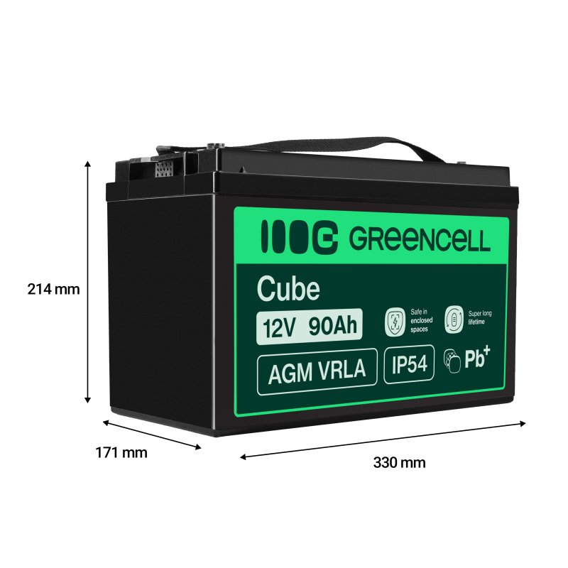 AGM GEL batteri 12V 90Ah blybatteri Green Cell vedligeholdelsesfri til autocampere og solceller