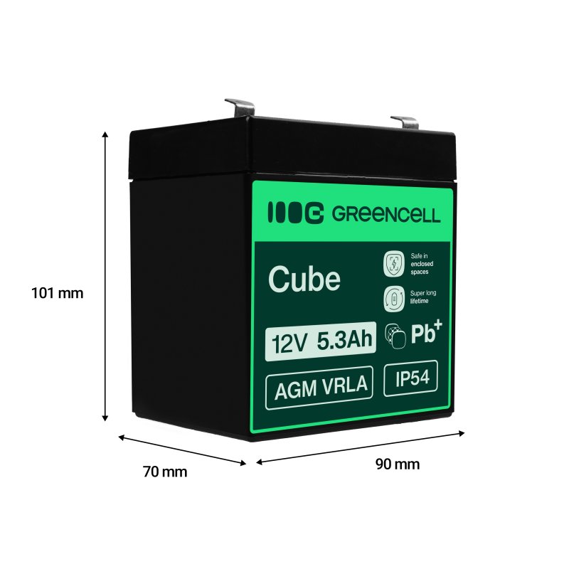 AGM GEL batteri 12V 5.3Ah blybatteri Green Cell vedligeholdelsesfri til alarm og bil