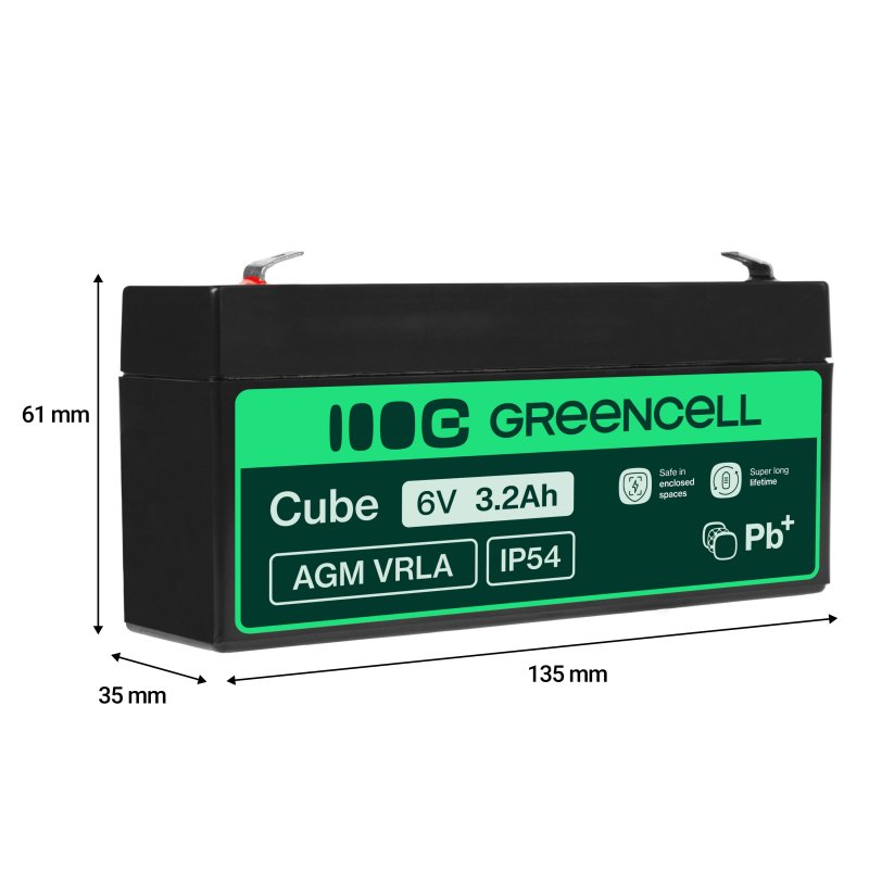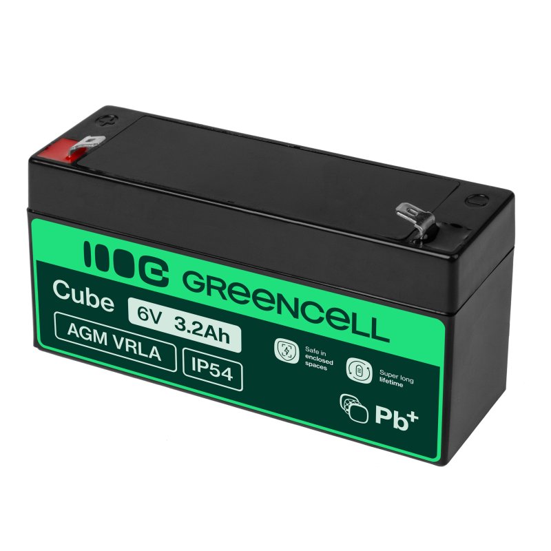 AGM GEL batteri 6V 3,2Ah blybatteri Green Cell vedligeholdelsesfri til lommelygte og nødbelysning